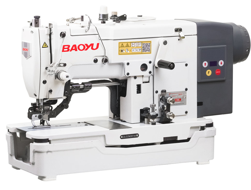 Baoyu GT-798D – электромеханическая петельная машина со встроенным сервоприводом и автоматическим подъемом лапки. Модель применяется для выметывания прямой петли на текстильных, трикотажных и более плотных материалах. Цикл выметывания петли полностью автоматический, за одно нажатие на педаль. Длина петли регулируется в диапазоне 6.4 – 31.8 мм, ширина от 2 до 5 мм.