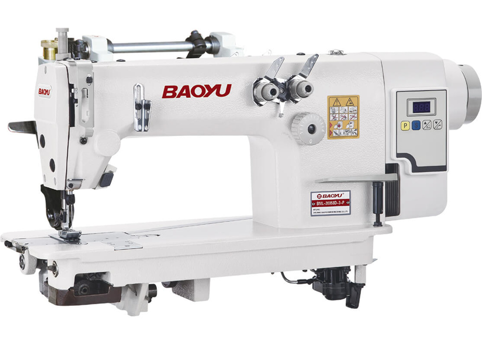 Baoyu BML-20058D-3P - промислова трьохголкова швейна машина двониткового цільного стібка з тандемним розташуванням голок і заднім пуллером. Швейне обладнання з використанням класу застосовується при пошитті білизни, чоловічих сорочок, джинсових виробів, виконаних операцій з'єднань деталей виробів із запобіжними, настроєними та розбудовими швами. Данна модель оснащена регульованим заднім роликом з поліуретану, для фіксованої протяжки матеріалів будь-якої щільності, без підкладки виробів.
