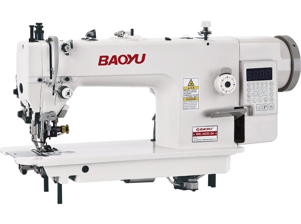 Baoyu BML-0303C-D4 - комп'ютерна промислова швейна машина зі збільшеним човником і подвійним механізмом просування матеріалу. При такому вигляді просування, матеріал переміщається за допомогою нижньої рейки і крокуючої лапки, тобто за рахунок двох рушійних механізмів. Таким чином забезпечується необхідне зчеплення і надійна фіксація всіх матеріалів. Розмір човника збільшений на 30%, для можливості використання більш містких шпульних ковпачків і роботи з товстою ниткою. Baoyu BML-0303C-D4 також оснащена пристроєм обрізки краю матеріалу, з можливістю регулювання ширини обрізки. Дана модель широко використовується для сточування встик і підготовки краю під окантовку.