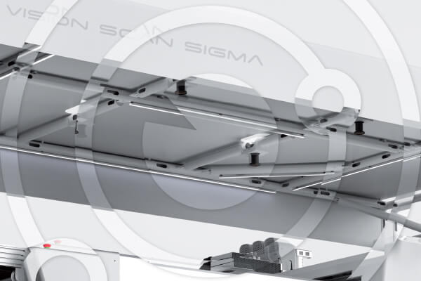 Опціональна система сканування з чотирма камерами (80 Мп) автоматично розпізнає характеристики тканин та забезпечує точне позиціонування деталей. Особливо ефективна при роботі з візерунками, смужками, клітинкою та еластичними матеріалами. Система може працювати в режимах розпізнавання повторюваних мотивів, вилучення контурів та зчитування друкованих міток.
